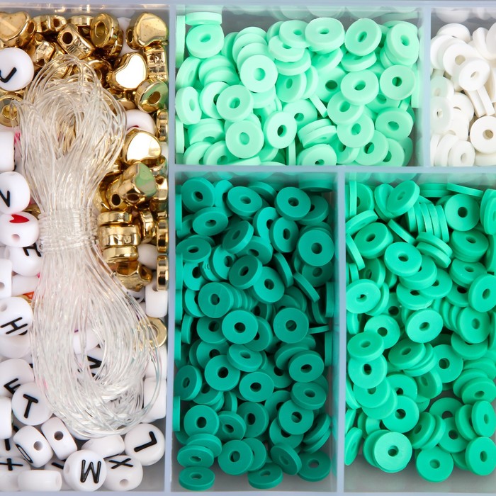 Бусины в шкатулке «Зелёные», нить 0.8 мм 5 м 12×8.4×2.2 см — Характеристики