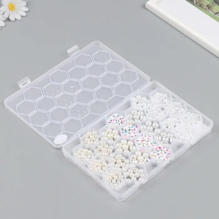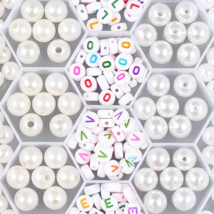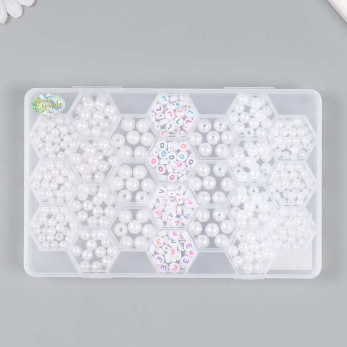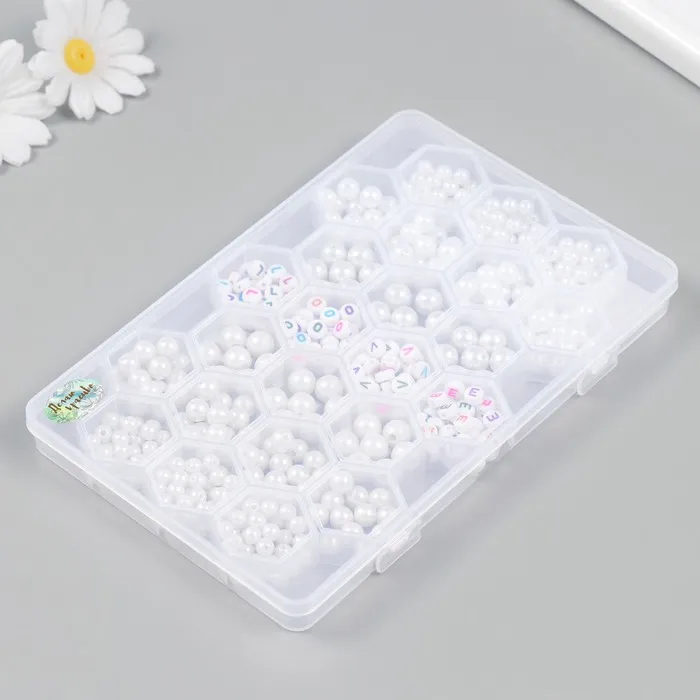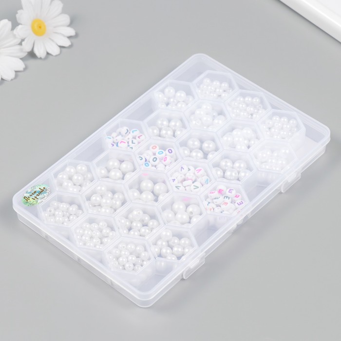 Бусины в шкатулке «Жемчуг и буковки», 24 деления, 20×13×1.8 см — Характеристики