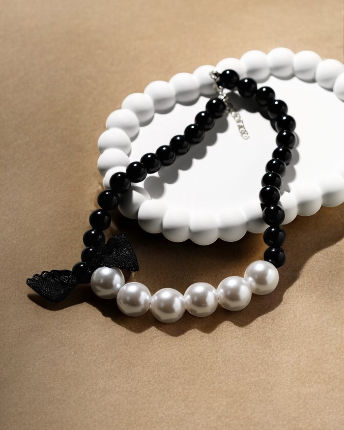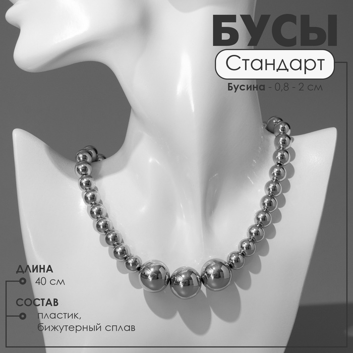 Бусы «Бантик», крупный жемчуг, шар №12-18, черно-белые, 41 см — Характеристики