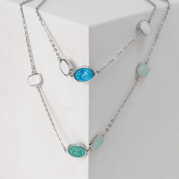 Бусы «Бирюзовый мир» цепочка, зелено-голубые в серебре, 45 см — Характеристики