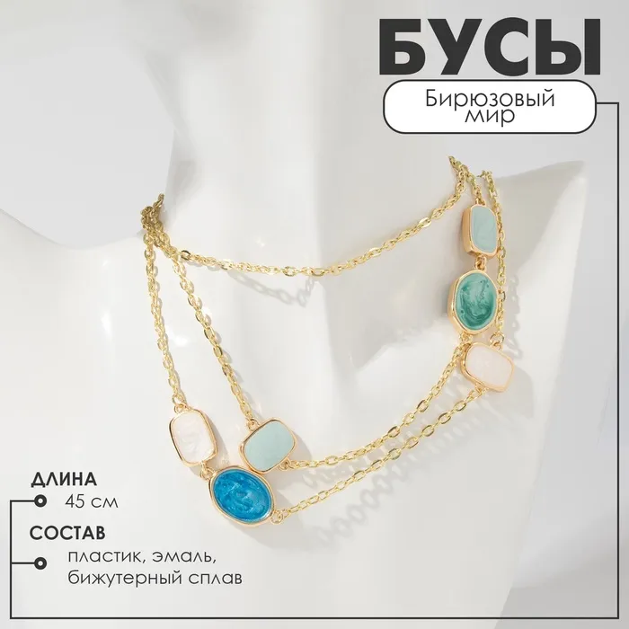 Бусы «Бирюзовый мир» цепочка, зелено-голубые в зол, 45 см — Характеристики