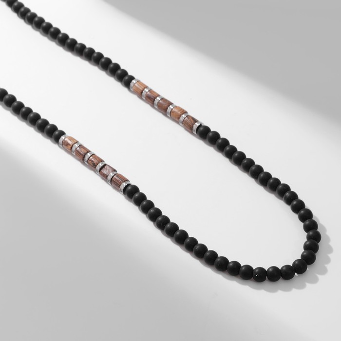 Бусы деревянные «Атлант» бусина со стразами, цвет чёрно-коричневый, 70 см — Характеристики