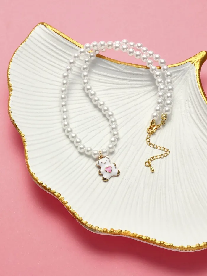 Бусы детские Выбражулька «Мишка», жемчуг, 40 см, белые в золоте — Характеристики