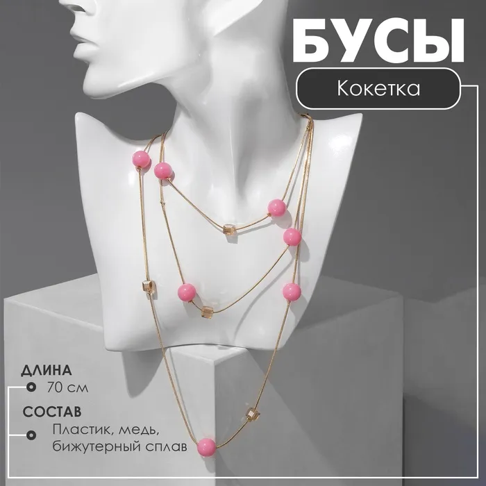 Бусы «Круги» 2 яруса, цвет розовый в золоте, 70 см — Характеристики