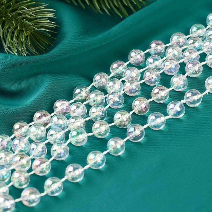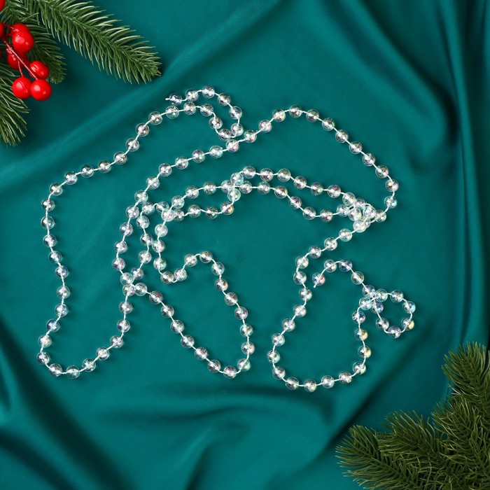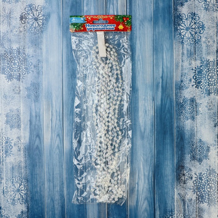 Прозрачные ёлочные бусы длиной 2 метра с диаметром 10 мм добавят классическую изящность праздничному декору. Однотонный перламутровый оттенок подчёркивает светлую и лёгкую атмосферу зимних праздников, органично вписываясь в стили скандинавского минимализма, датской классики и ар-деко.