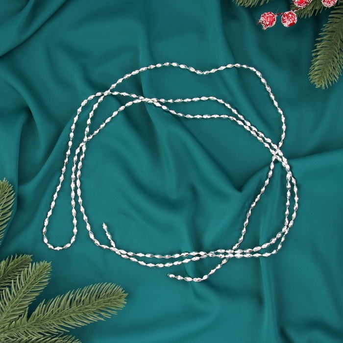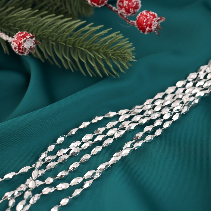 Серебристые декоративные бусины длиной 2 метра с овальной гранёной формой создают изящное украшение для новогодней ёлки. Однотонный дизайн выдержан в стиле датской классики, подчёркивая сдержанность и утончённость праздничного декора. Изготовленные из лёгкого пластика, они удобны в использовании и долговечны.