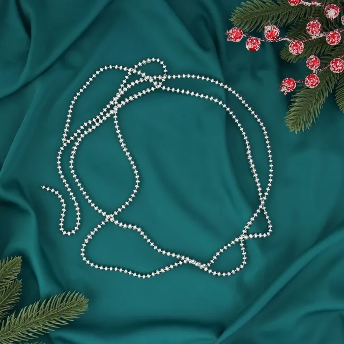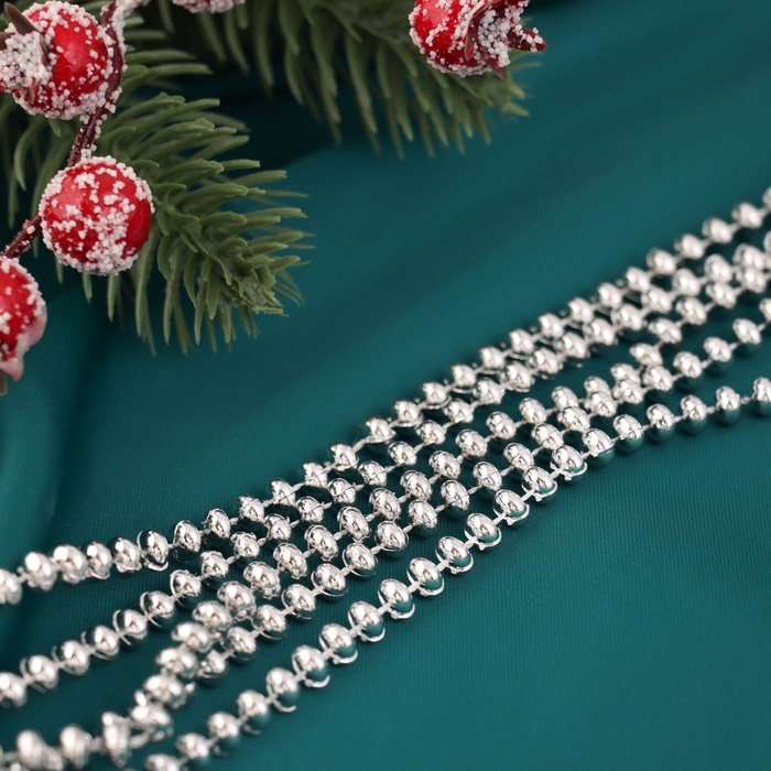 Серебристая гирлянда из бусин длиной 2 метра с диаметром 4 мм представляет собой изящное украшение для новогодней ёлки. Однотонный дизайн выдержан в классическом датском стиле, подчёркивая элегантность и сдержанность праздничного декора. Изготовленные из лёгкого пластика, бусины удобны в использовании и долговечны.