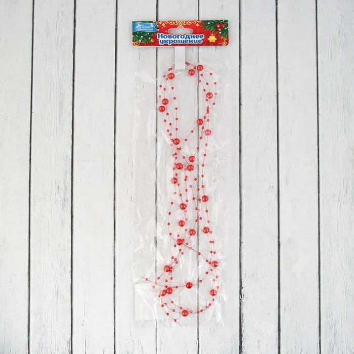 Бусы на ёлку 2 м d=7 мм «Бусины нити» красный — Характеристики