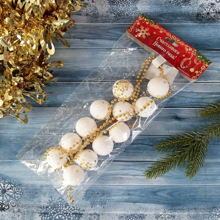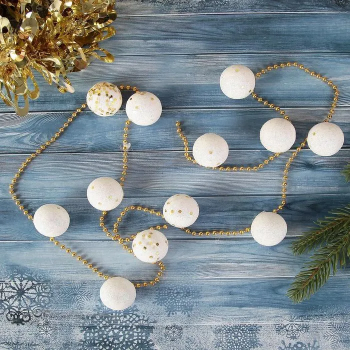 Бусы на ёлку «Белые шарики с блёстками», длина 1.2 м, d=2.5 см — Характеристики