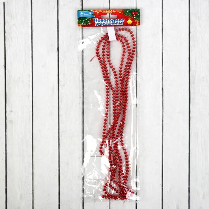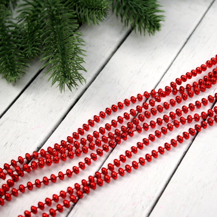Бусы на ёлку «Бусинки», длина 2 м, d=4 мм, красные — Характеристики