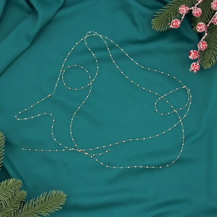 Золотистая гирлянда из мини-бусин длиной 2 метра станет стильным дополнением новогоднего декора. Тонкие нити с мелкими бусинами диаметром 2 мм подчёркивают изящество оформления и гармонично вписываются в интерьеры в стиле ар-деко и новогоднего барокко.