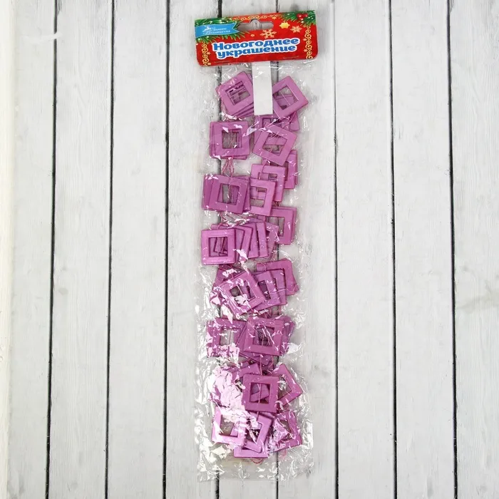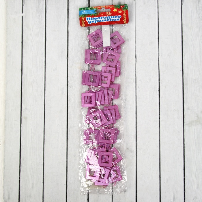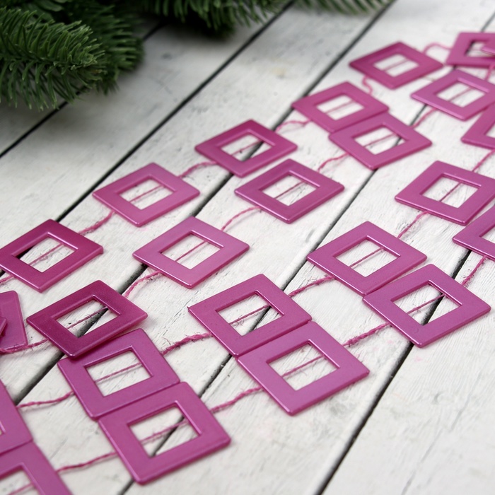 Бусы на ёлку «Квадрат», длина 2.7 м, фиолетовые