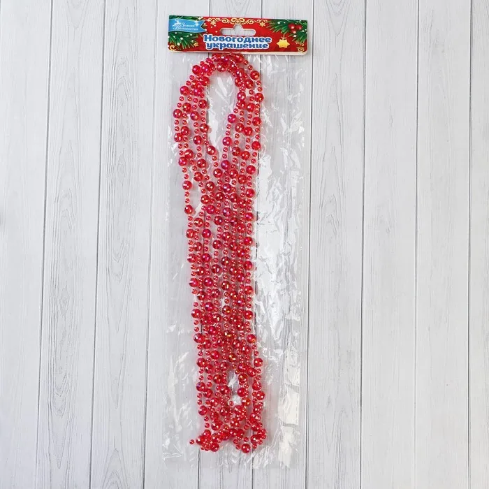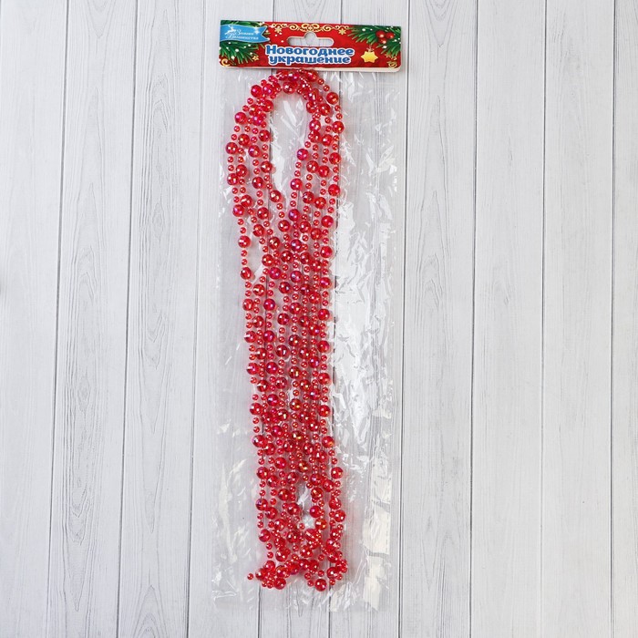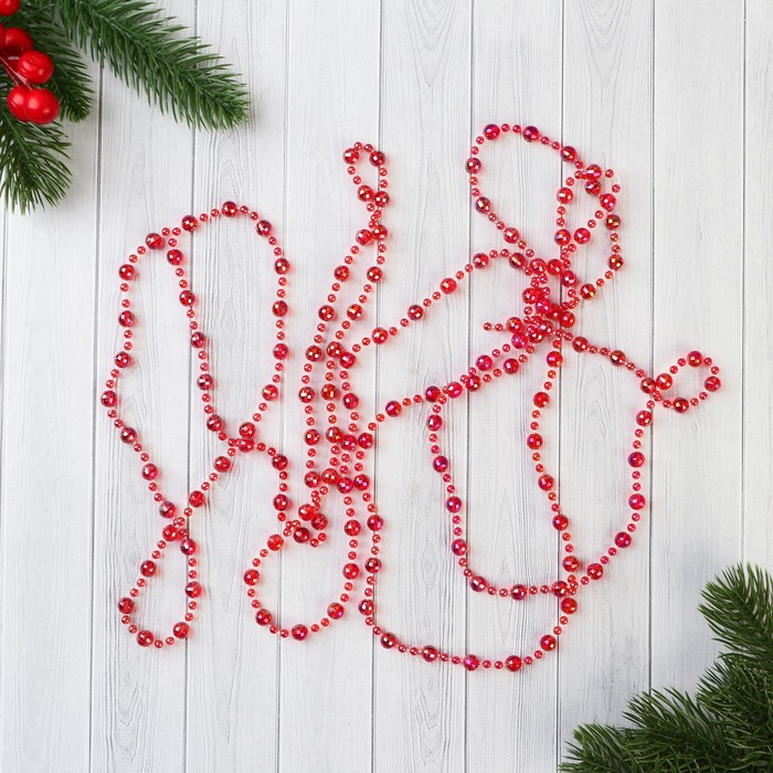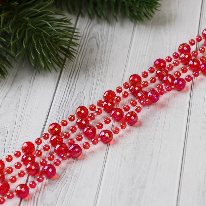 Бусы на ёлку «Льдинка», 2.7 метров, d=7 мм, гранёные бусины, красный — Характеристики