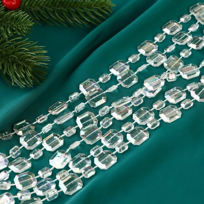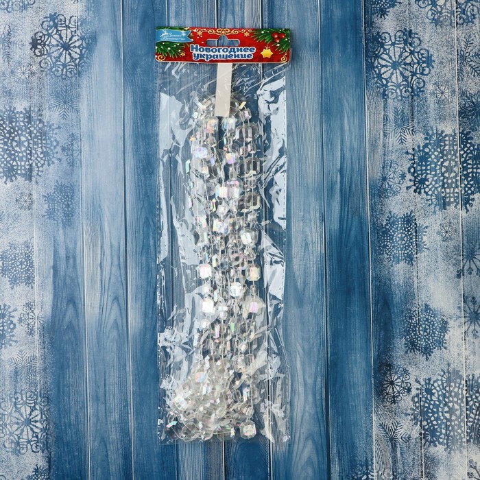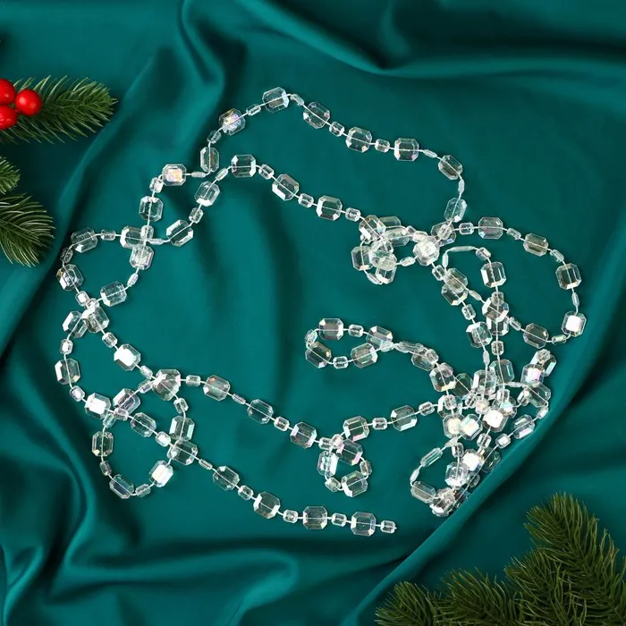 Превратите ёлку в сияющий символ зимней магии! Прозрачные ёлочные бусы длиной 2.7 метров - это украшение, которое добавит вашему праздничному декору элегантности и утончённости. Бусины диаметром 12 мм переливаются мягким перламутровым блеском, напоминая ледяные кристаллы, мерцающие на солнце.