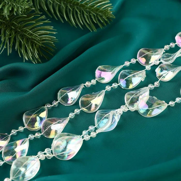 Превратите ёлку в сияющий символ зимней магии! Перламутровые ёлочные бусы длиной 2.7 метров - это украшение, которое добавит вашему праздничному декору элегантности и утончённости. Крупные прозрачные бусины диаметром 15 мм переливаются мягким светом, напоминая ледяные кристаллы, мерцающие на солнце.