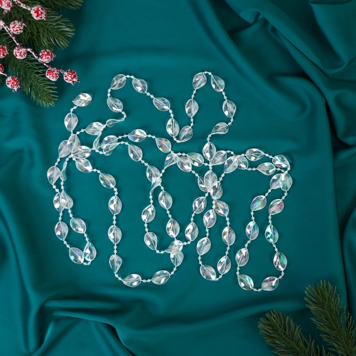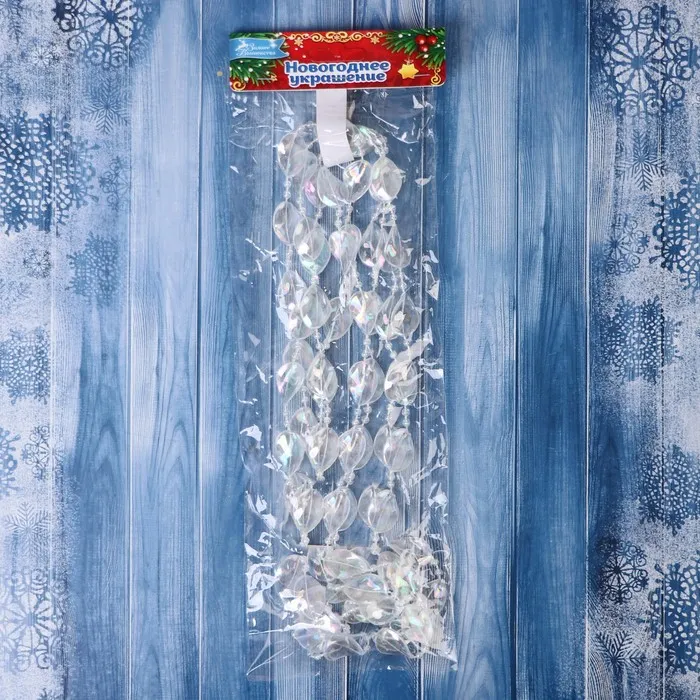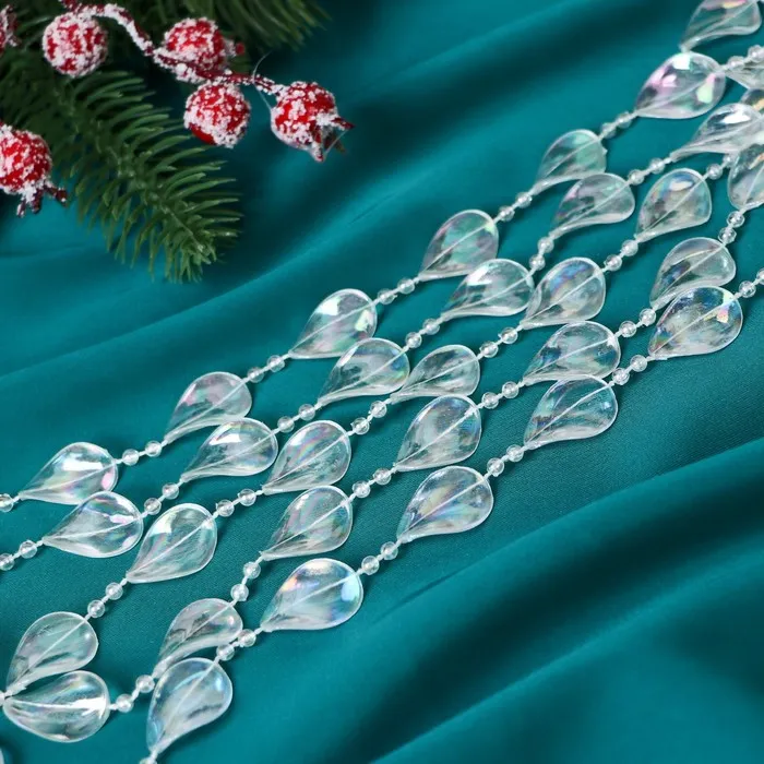 Превратите свою ёлку в сияющий символ зимней магии! Перламутровые ёлочные бусы длиной 2.7 метров - это украшение, которое добавит вашему праздничному декору элегантности и утончённости. Крупные прозрачные бусины диаметром 15 мм переливаются мягким светом, напоминая ледяные кристаллы, мерцающие на солнце.