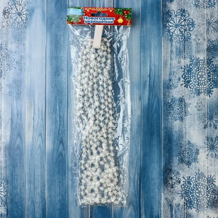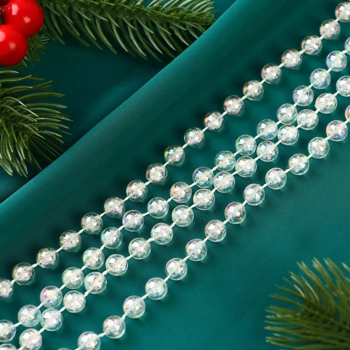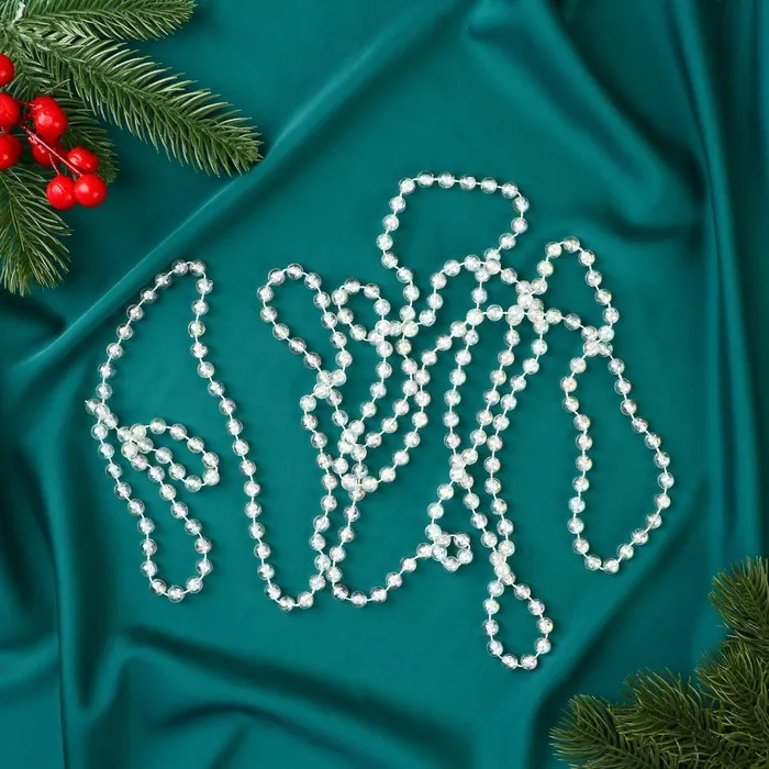 Добавьте ёлке нотку зимней магии! Прозрачные ёлочные бусы длиной 2.7 метров - это универсальное украшение, которое наполнит вашу гостиную атмосферой праздника. Перламутровый блеск мелких бусин диаметром 5 мм создаёт эффект мерцающих ледяных капель, идеально вписывающихся в скандинавский, классический или ар-деко стиль.