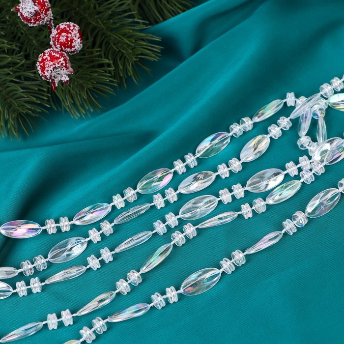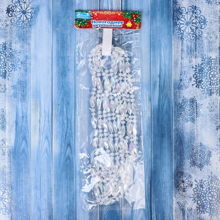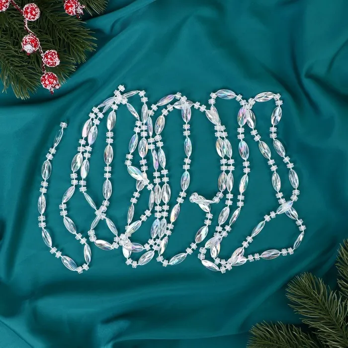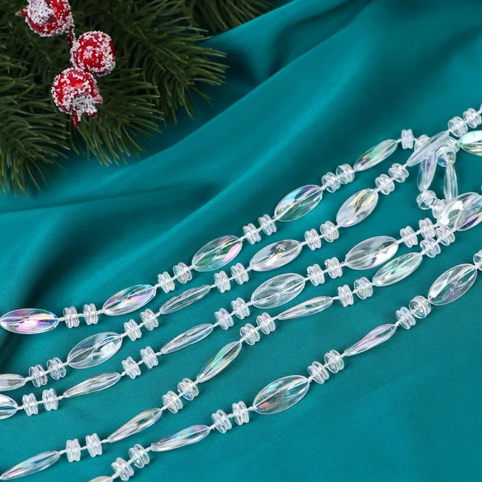 Превратите вашу ёлку в сияющий символ праздника! Прозрачные бусы «Лёд» длиной 2,7 метра станут идеальным выбором для тех, кто ценит элегантность и утончённость. Их перламутровый блеск напоминает сверкающие кристаллы льда, добавляя интерьеру нотку зимней магии и свежести.