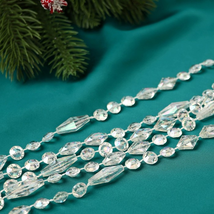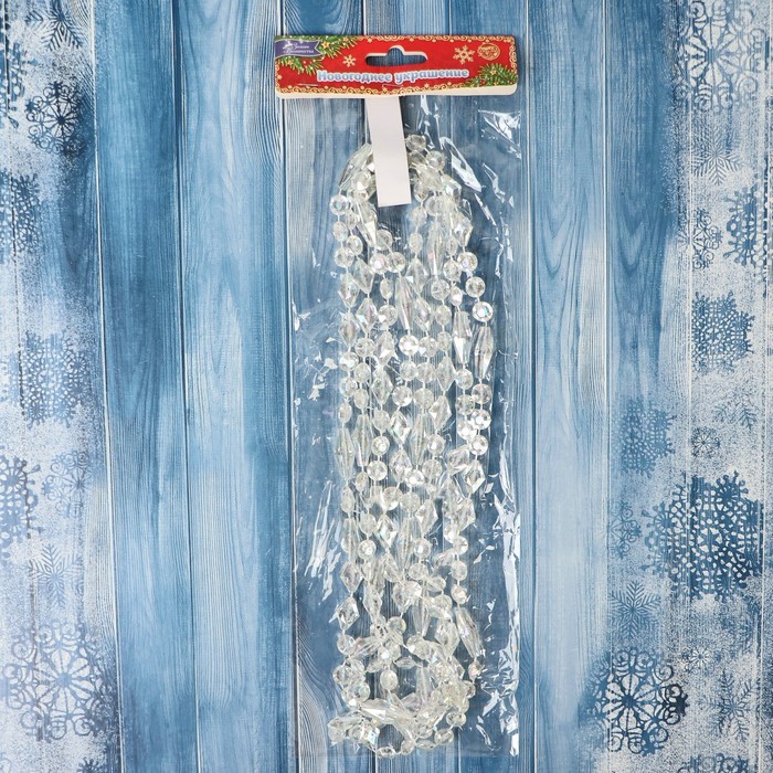 Превратите ёлку в сияющий символ зимней магии! Прозрачные перламутровые бусы длиной 2.7 метра - это универсальное украшение, которое добавит вашему праздничному декору элегантности и утончённости. Бусины ромбовидной формы диаметром 9 мм переливаются мягким светом, напоминая мерцание ледяных кристаллов на солнце.