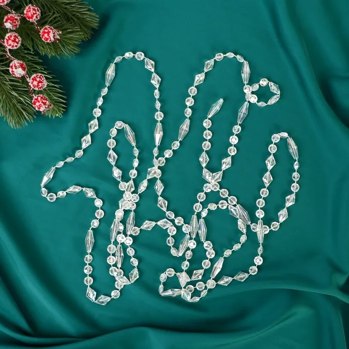 Превратите ёлку в сияющий символ зимней магии! Прозрачные перламутровые бусы длиной 2.7 метра - это универсальное украшение, которое добавит вашему праздничному декору элегантности и утончённости. Бусины ромбовидной формы диаметром 9 мм переливаются мягким светом, напоминая мерцание ледяных кристаллов на солнце.