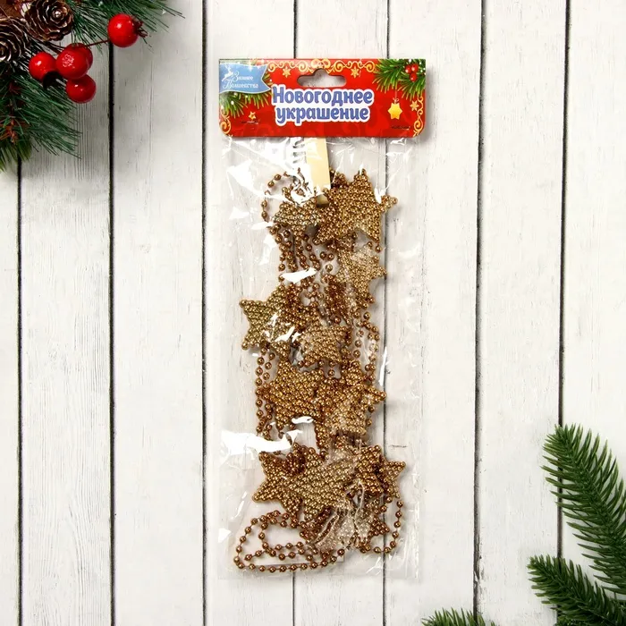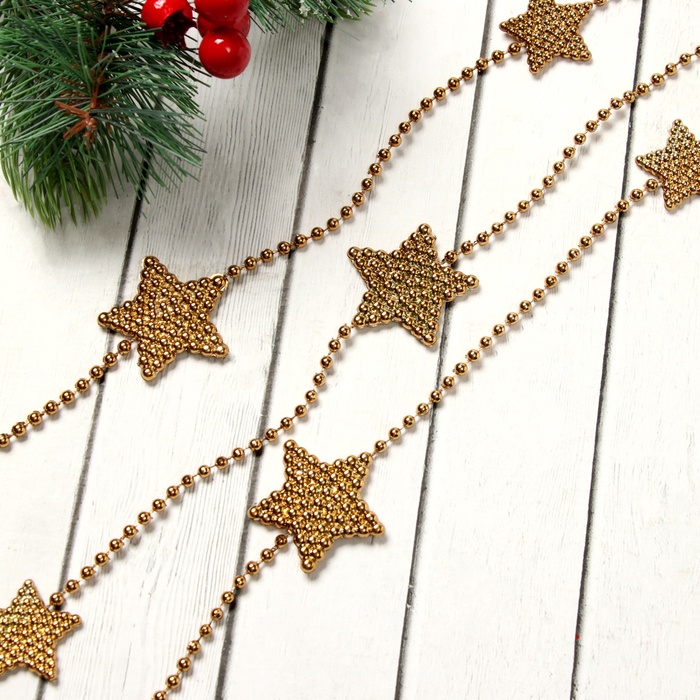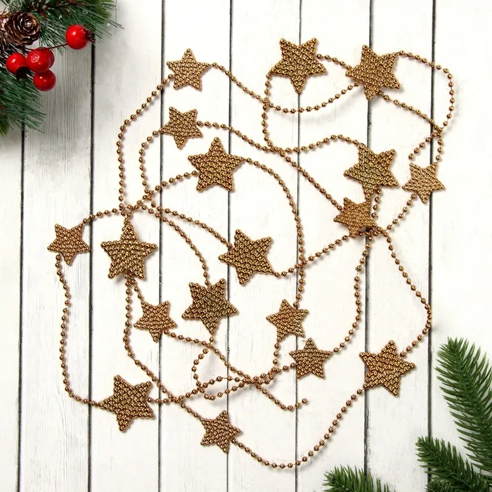 Бусы на ёлку «Объёмные звёзды», длина 2.7 м, бронзовые — Характеристики