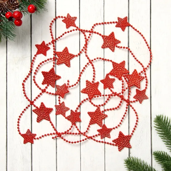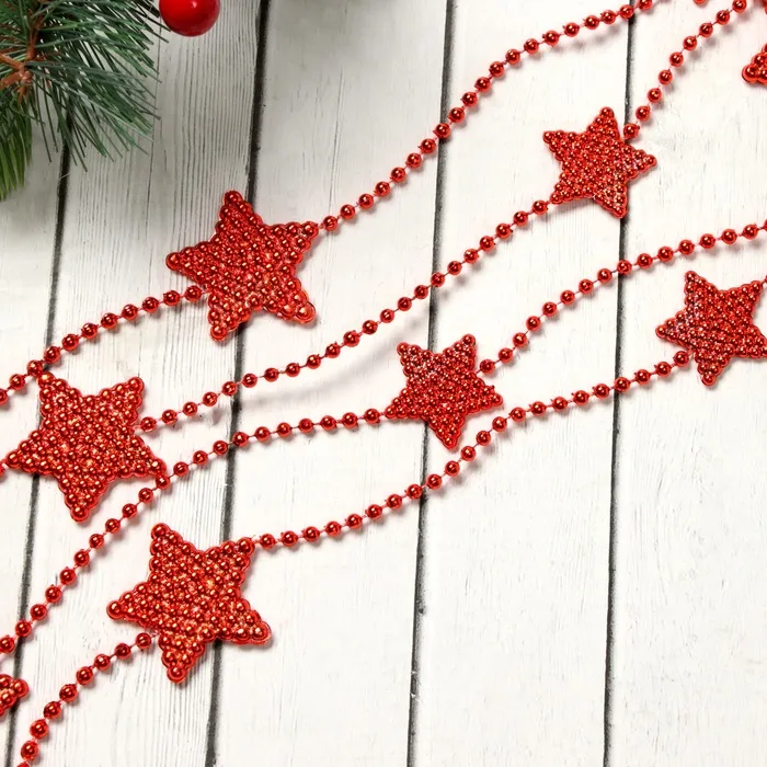 Эти объемные новогодние бусины длиной 2,7 метра в насыщенном красном цвете станут ярким украшением елки и праздничного интерьера. Их форма в виде объемных звезд создаёт эффектный акцент, придавая декору глубину и выразительность.