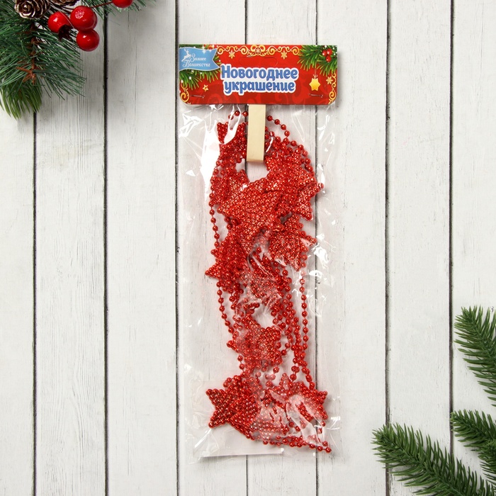 Бусы на ёлку «Объёмные звёзды», длина 2.7 м, красные — Характеристики