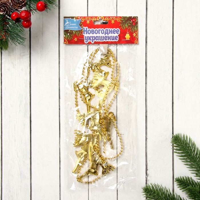 Бусы на ёлку «Олени», длина 1 м, золотистые — Характеристики