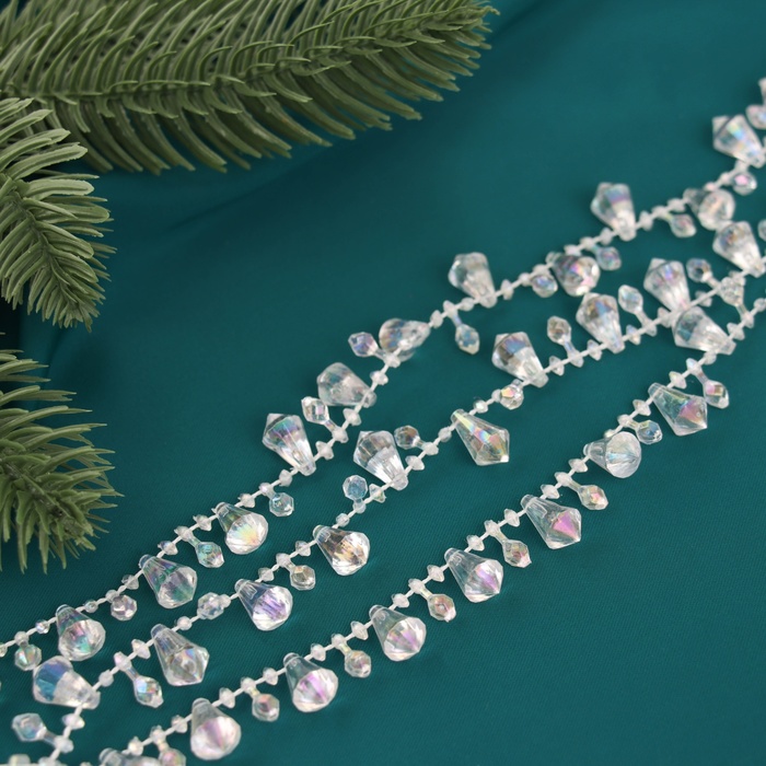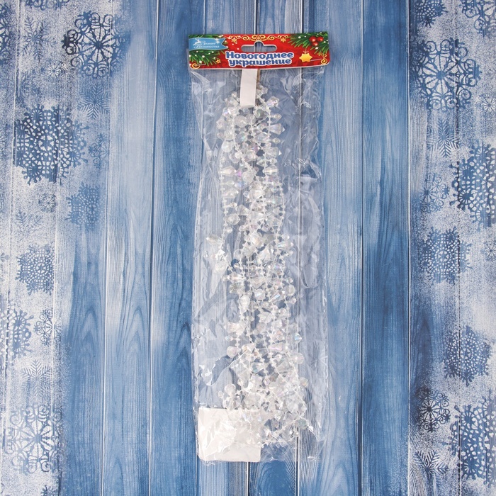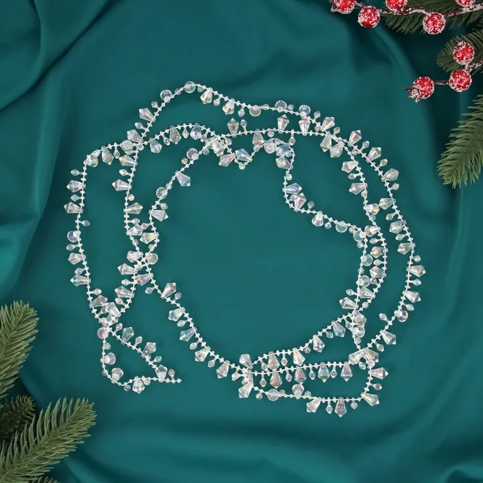 Прозрачные бусы длиной 2 метра с диаметром 15 мм создают классический и лаконичный акцент в новогоднем оформлении. Их однотонный перламутровый оттенок добавляет лёгкости и свежести, подчёркивая зимнюю атмосферу.