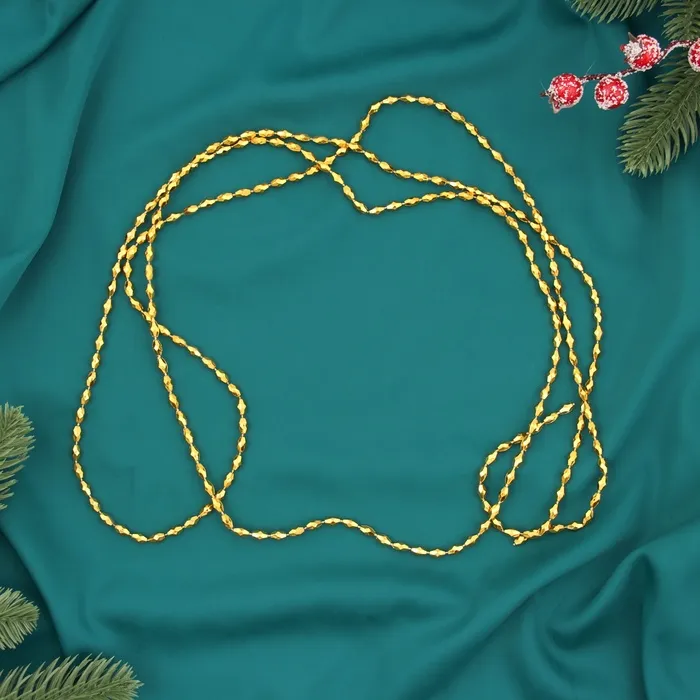 Золотистая гирлянда из пластиковых бус длиной 2 метра привносит в новогодний декор изящество и блеск. Тонкие овальные звенья создают эффект грани, подчёркивая стиль ар-деко и новогоднего барокко в оформлении ёлки.