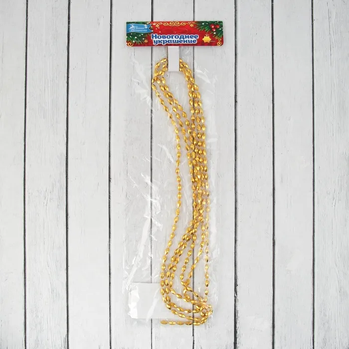 Бусы на ёлку «Овалы грани», 2 м, d=3 мм, золотистый — Характеристики