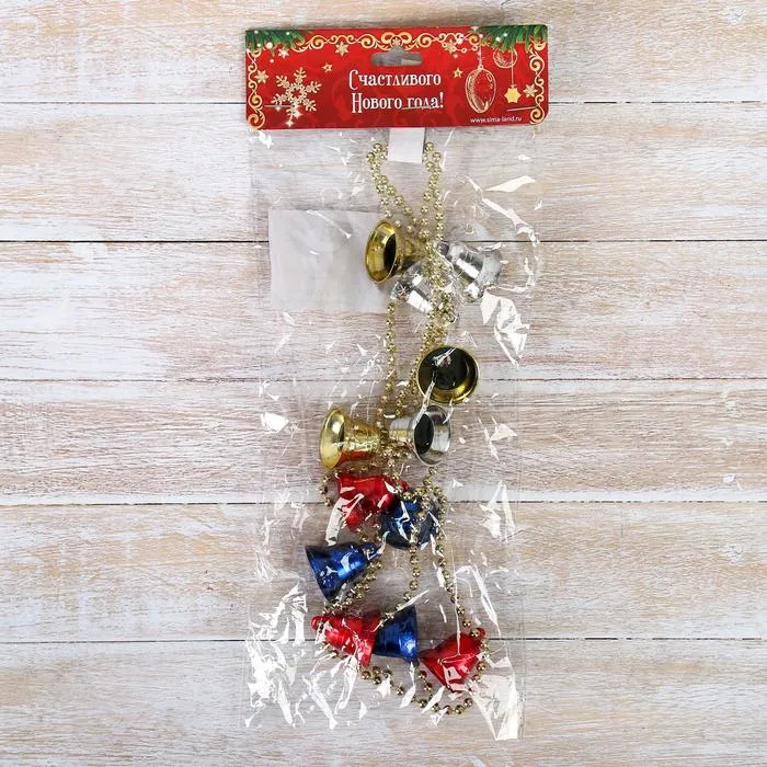 Превратите вашу ёлку в яркий центр праздничного декора! Бусы «Разноцветные колокольчики» длиной 1,1 метра добавят игривости и красок в новогоднее оформление. Их разноцветный дизайн и пластиковые элементы в форме колокольчиков создают ощущение праздника, привлекая внимание и радуя глаз.