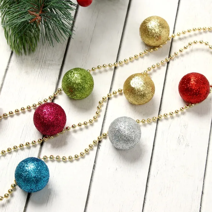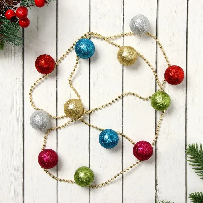 Эти бусины с разноцветными шариками станут надежным дополнением к вашему новогоднему декору. Их насыщенные цвета и классическая форма подчеркнут атмосферу праздника и создадут уютную зимнюю обстановку. Просты в использовании и долговечны, они сохранят свой привлекательный вид на многие сезоны зимних праздников, радуя вас каждый год.