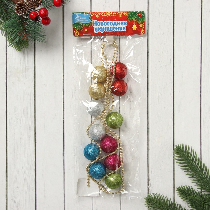 Бусы на ёлку «Разноцветные шарики», длина 1.2 м, d=3 см — Характеристики
