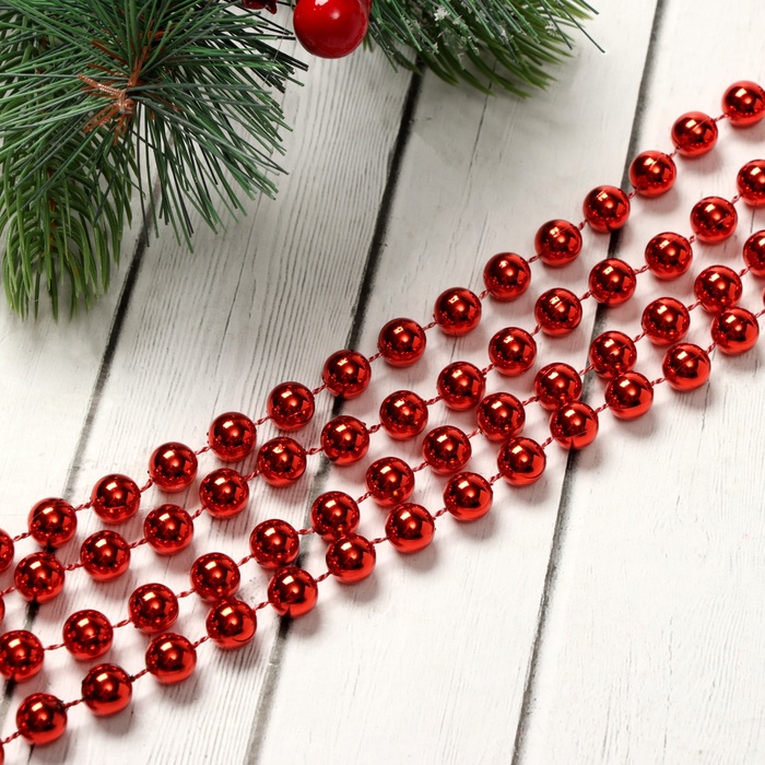 Бусы на ёлку «Шары», длина 2.7 м, d=7 мм, красные