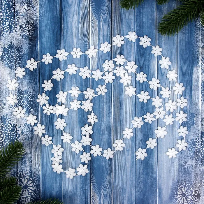 Эти бусы станут универсальным решением для создания стильного новогоднего декора. Их белый цвет гармонично сочетается с любыми другими украшениями, будь то классические шары или современные гирлянды. Благодаря компактности и лёгкости хранения, они не займут много места в межсезонье, оставаясь готовыми к следующему празднику.