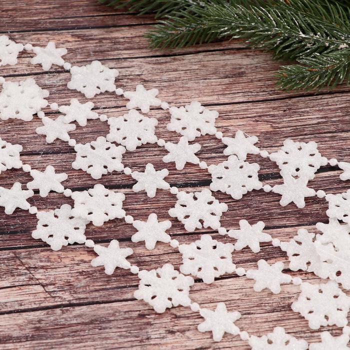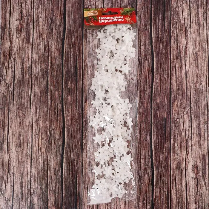 Гирлянда снежинок на ёлку добавит изысканности новогоднему декору. Её белый цвет и пластиковый материал создают ощущение лёгкости и чистоты, гармонично вписываясь в праздничный интерьер.