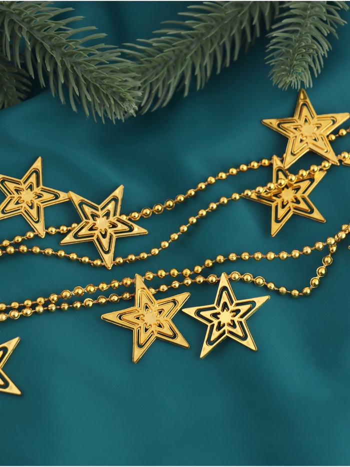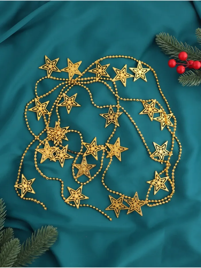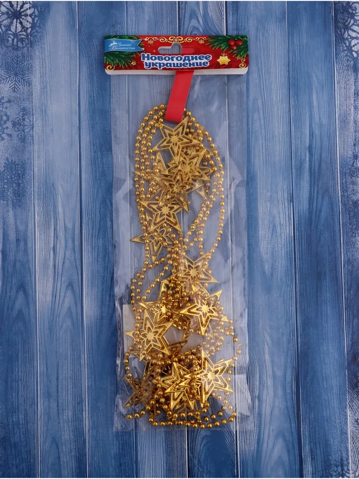 Превратите вашу ёлку в сияющий символ праздника! Золотистые бусы «Звёзды» длиной 2,7 метра станут идеальным выбором для тех, кто ценит роскошь и элегантность. Их крупные звёзды диаметром 40 мм добавляют нотку великолепия, превращая вашу ёлку или интерьер в центр внимания.
