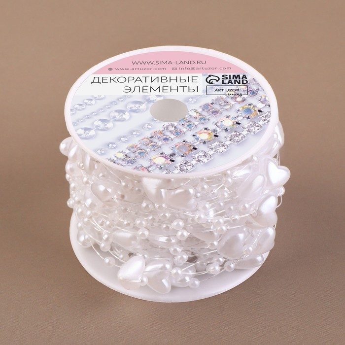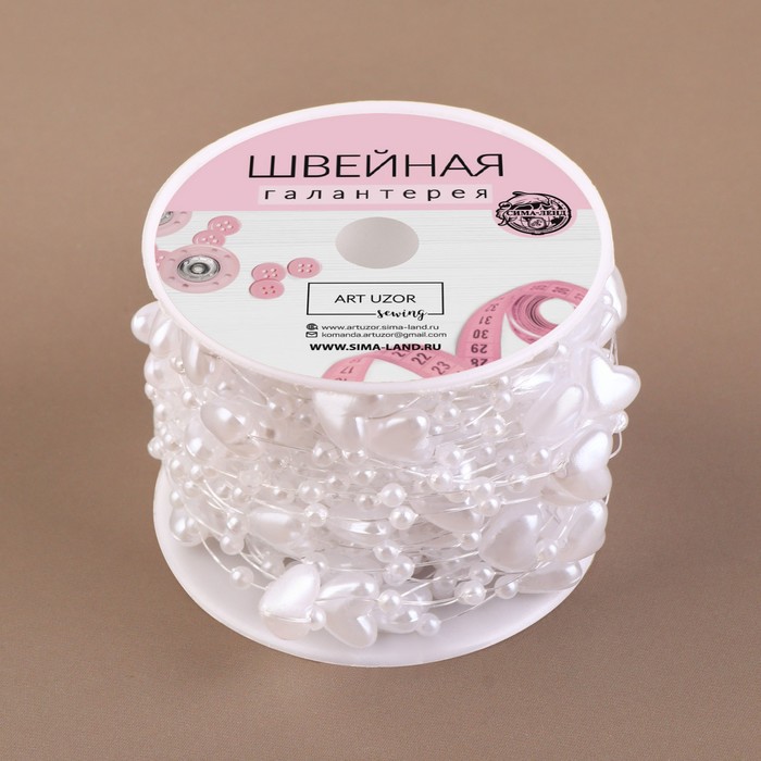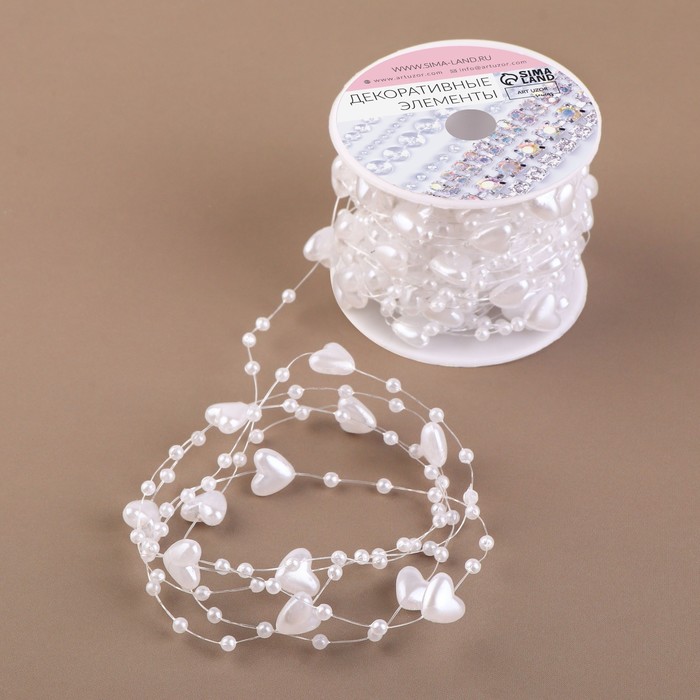 Бусы на леске, «Сердца», 3/9 мм, 9 ± 0,5 м, цвет белый — Характеристики
