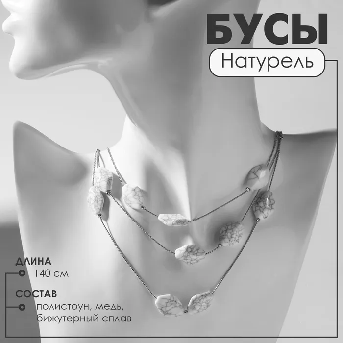 Бусы «Натурель» настроение, под Кахолонг, белые в серебре, 140 см — Характеристики