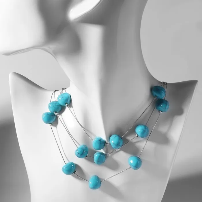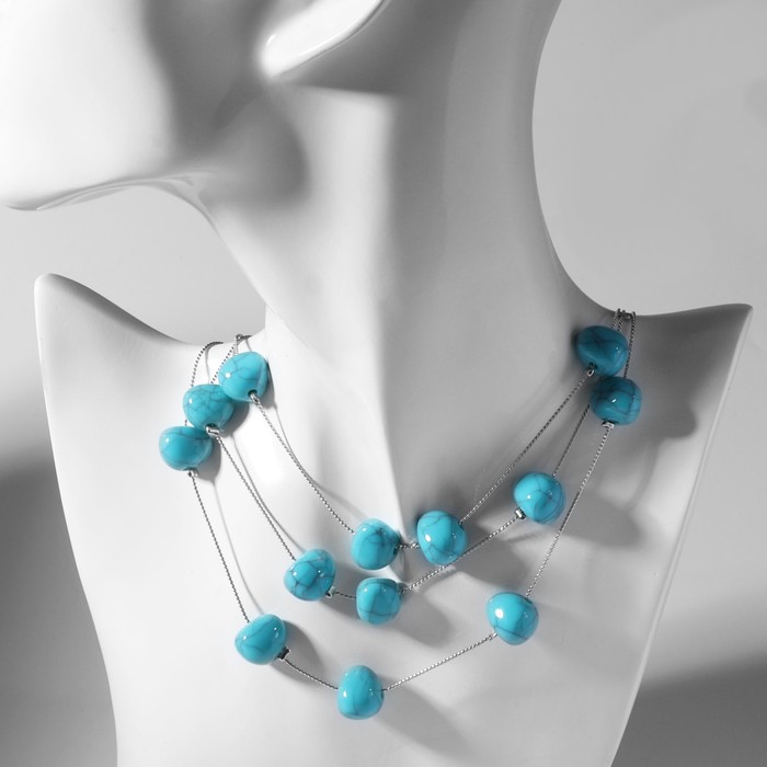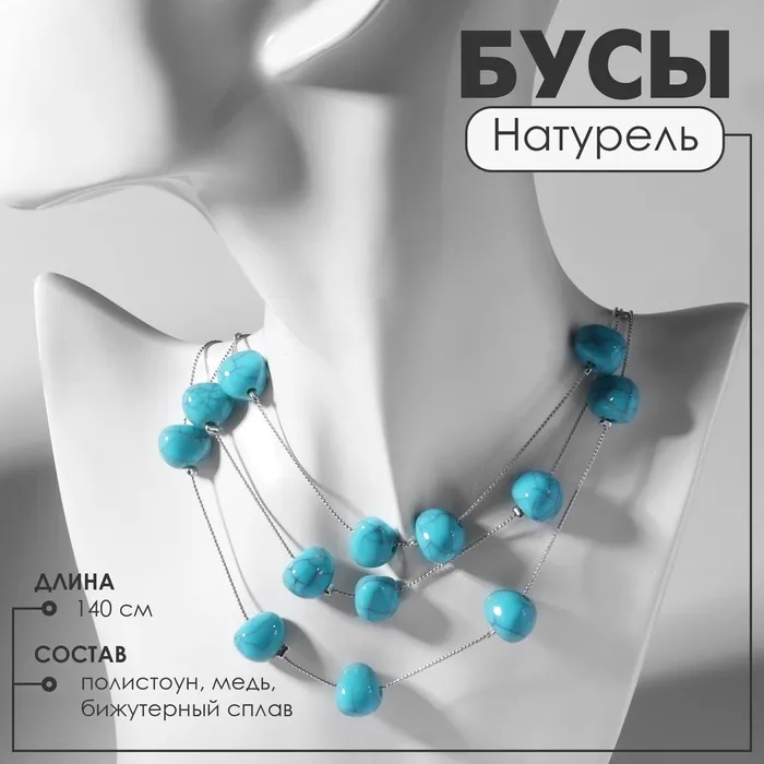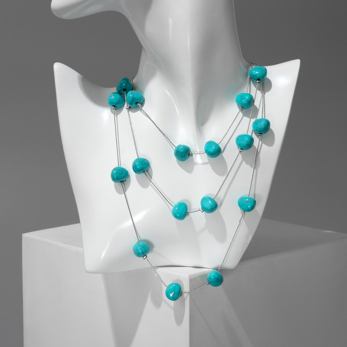 Бусы «Натурель» стиль, под бирюзу, голубые в серебре, 140 см — Характеристики