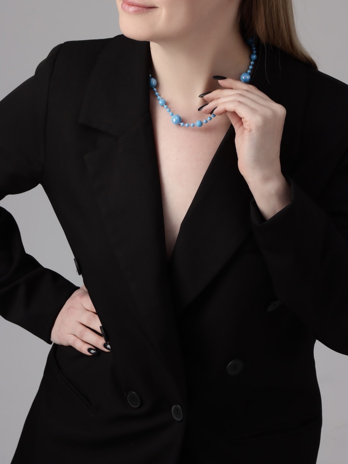 Бусы придадут образу лёгкий шарм и очарование. Они отлично подойдут как к офисной блузке, разбавив её классический стиль, так и к вечернему платью. Такое украшение гармонично дополнит любую вещь из гардероба, поэтому бусы можно смело сочетать с разными стилями одежды.