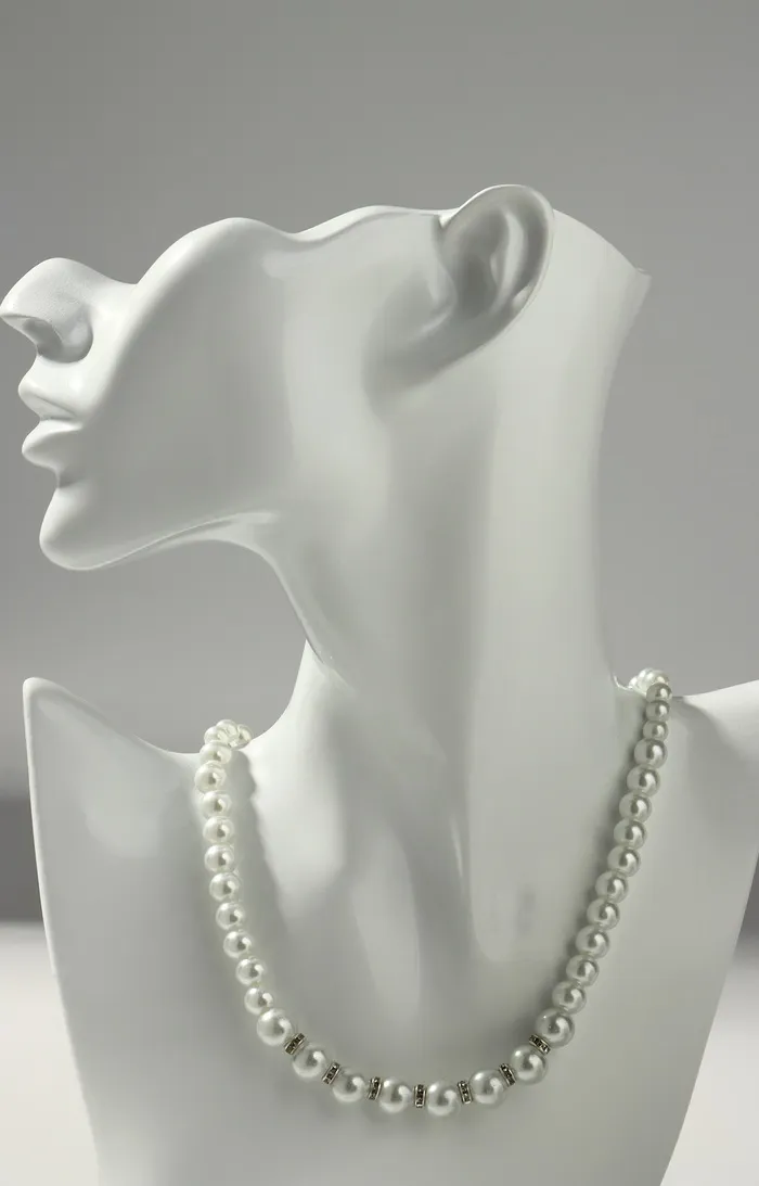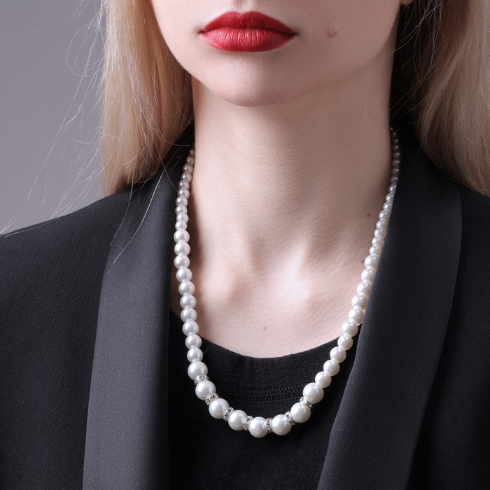 Бусы «Невеста» с жемчугом, бусины со стразами, шар № 4.6.8, белые, 45 см — Характеристики