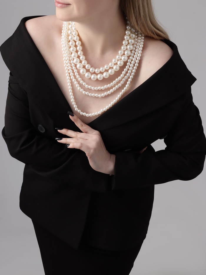 Бусы придадут образу лёгкий шарм и очарование. Они отлично подойдут как к офисной блузке, разбавив её классический стиль, так и к вечернему платью. Такое украшение гармонично дополнит любую вещь из гардероба, поэтому бусы можно смело сочетать с разными стилями одежды.