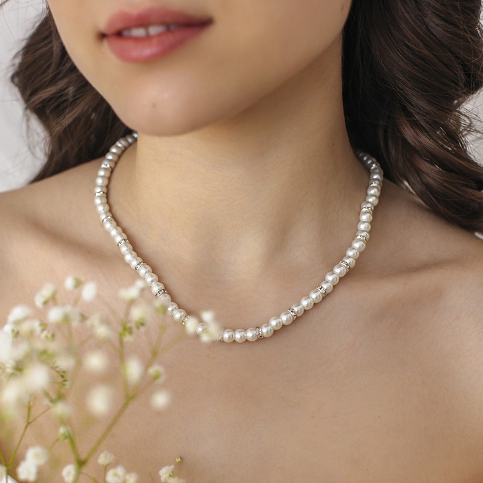 Бусы «Невеста» с жемчугом, со стразами, шар №4, белые, 43.5 см — Характеристики