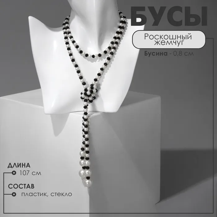 Бусы «Роскошный жемчуг» гирлянда, шар №8, чёрно-белые, L=107 см — Характеристики