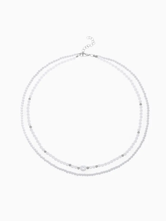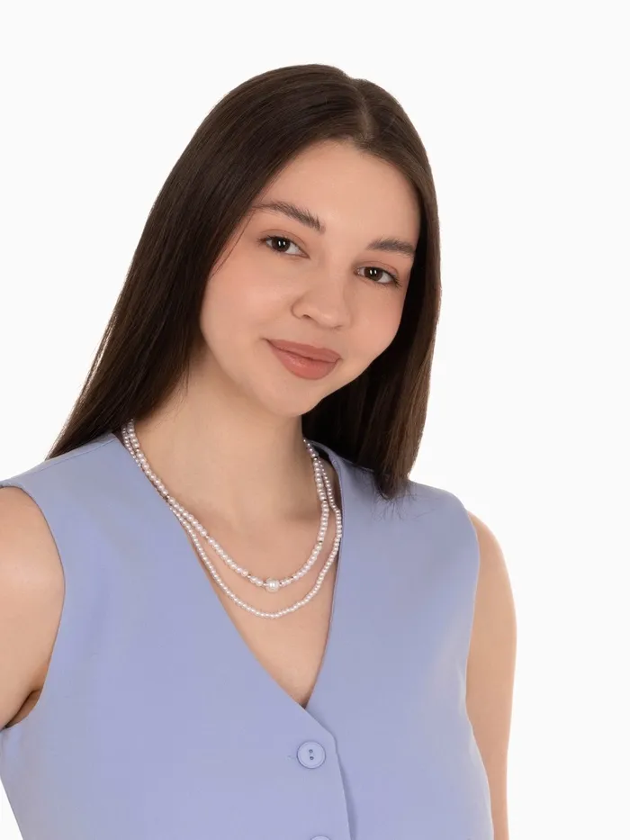 Бусы с жемчугом «Бусина», два ряда №4+6, белые в серебре, 50 см — Характеристики