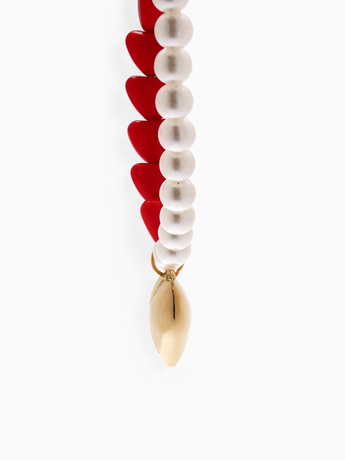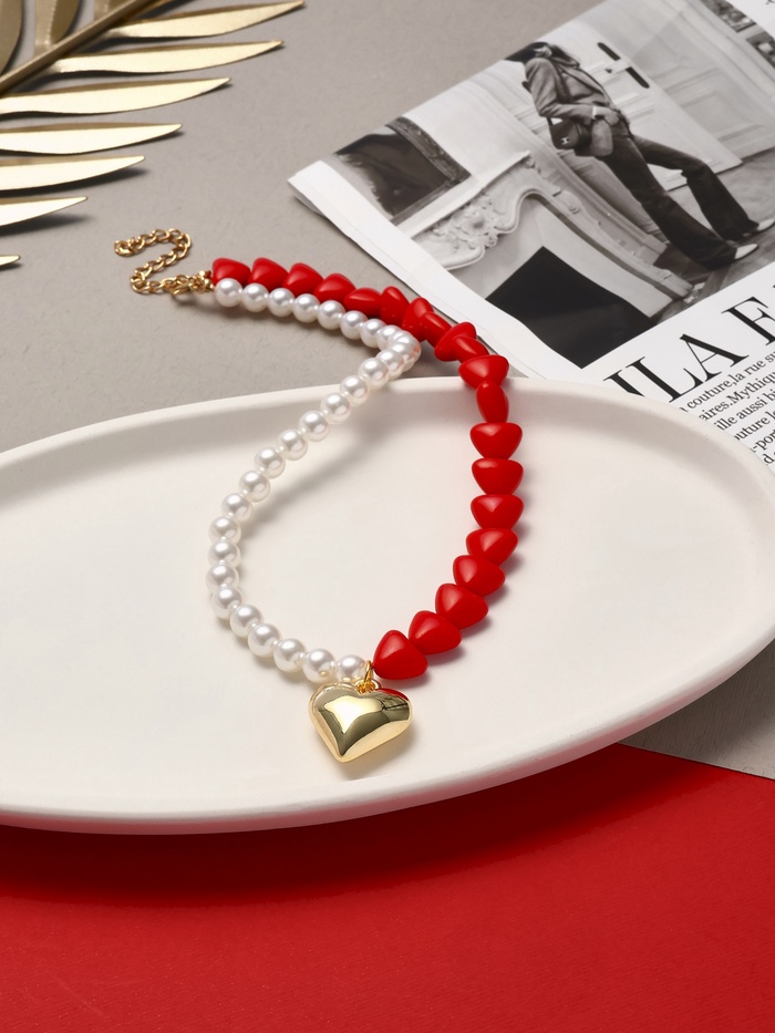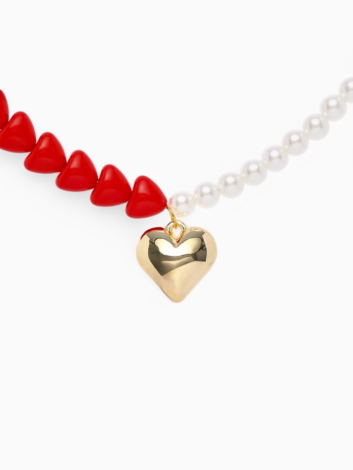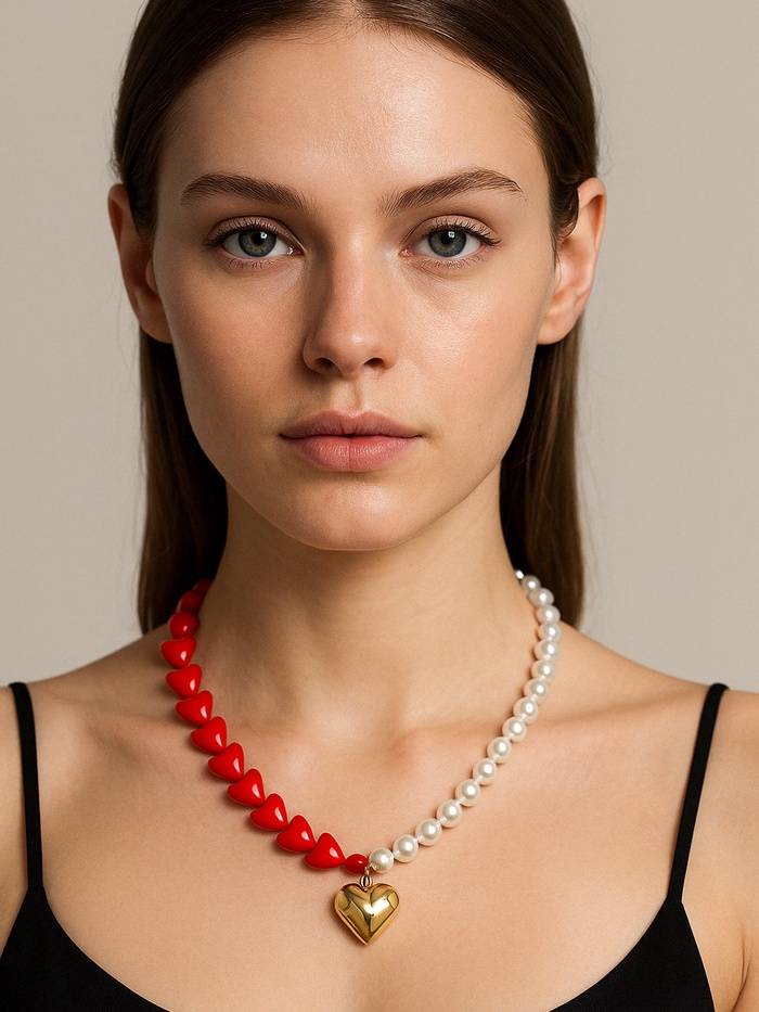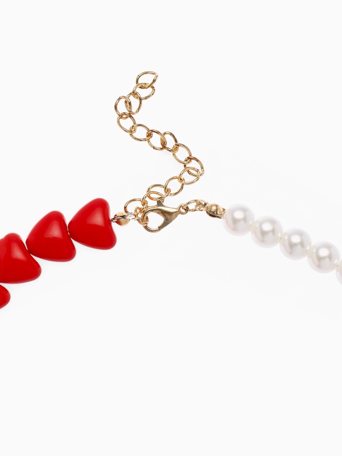 Бусы с жемчугом «Сердце», красно-белый в золоте, 45 см — Характеристики