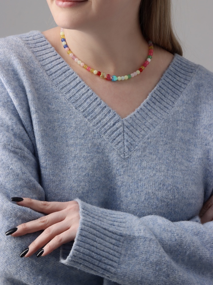 Бусы придадут образу лёгкий шарм и очарование. Они отлично подойдут как к офисной блузке, разбавив её классический стиль, так и к вечернему платью. Такое украшение гармонично дополнит любую вещь из гардероба, поэтому бусы можно смело сочетать с разными стилями одежды.