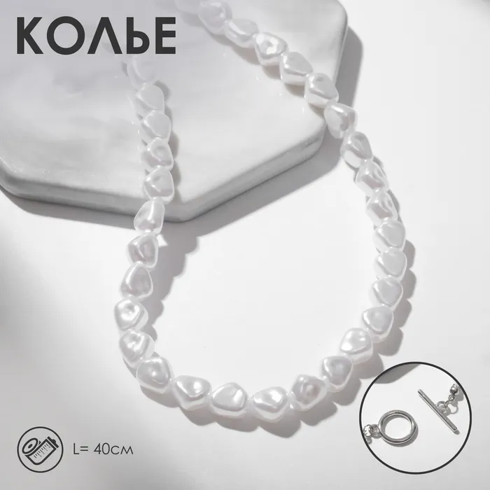 Бусы «Тогл» с жемчугом, шар №6, белые, L=40 см — Характеристики